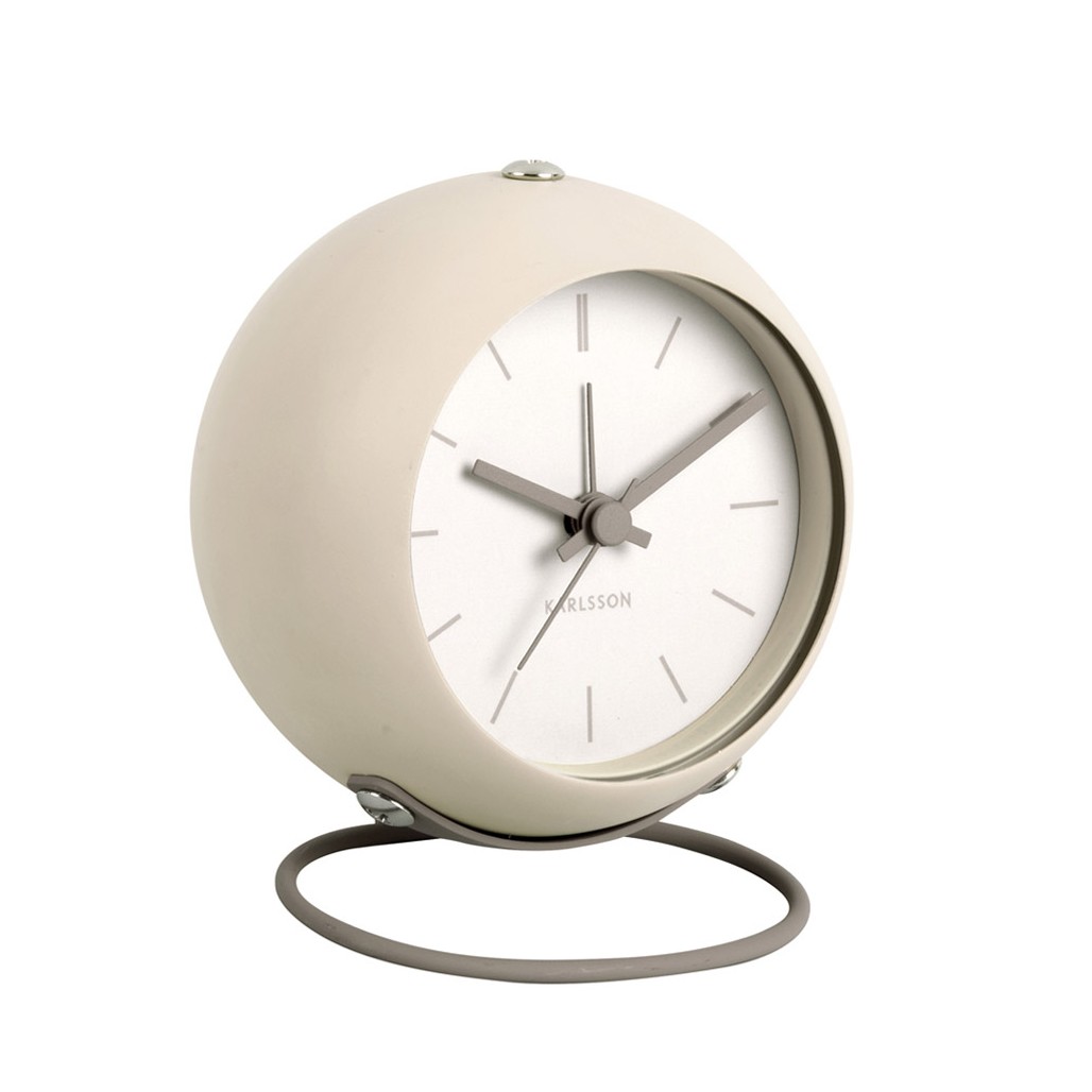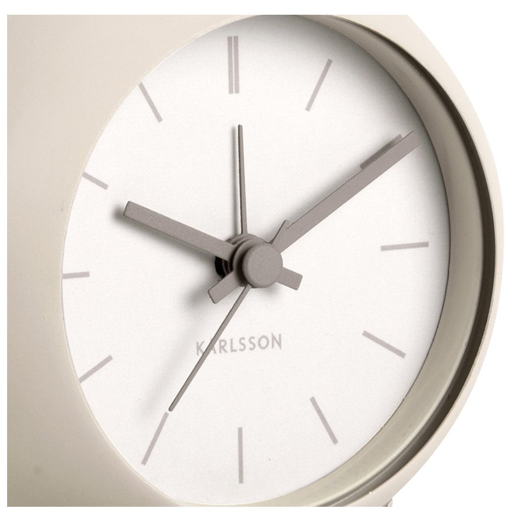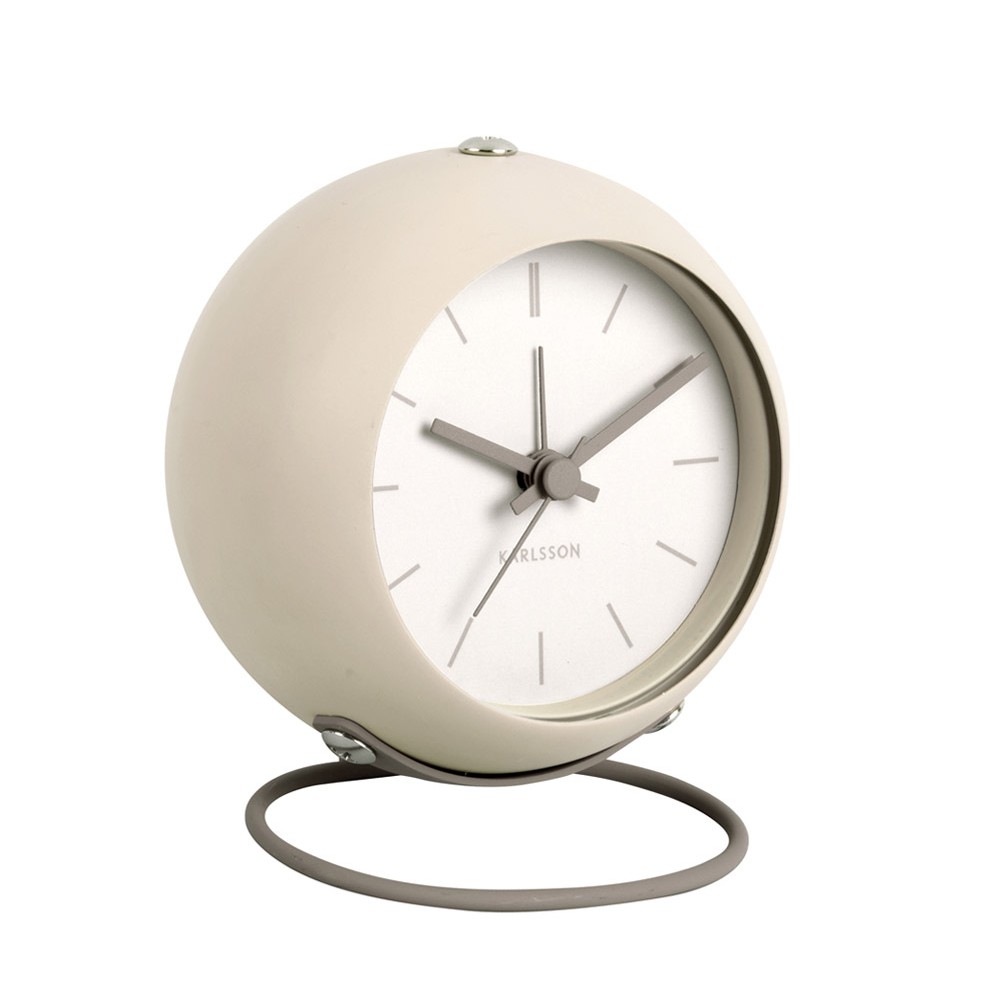 En snyggt designad väckarklocka från Karlsson. Klockans varmgrå hölje matchar det grå stativet på ett härligt sätt. Klockan har ett tystgående urverk.